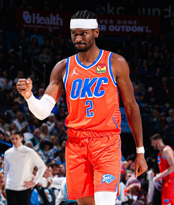 第三节SGA按照往常一样开启了接管模式,两次抢断库明加,被放空的三分连续命中,为哈腾、霍姆格伦、乔送出助攻,SGA很快完成两双数据(本赛季第二次得分+助攻的两双),单节SGA13分6助攻3抢断1盖帽,三节28分12助攻5篮板3抢断1盖帽。